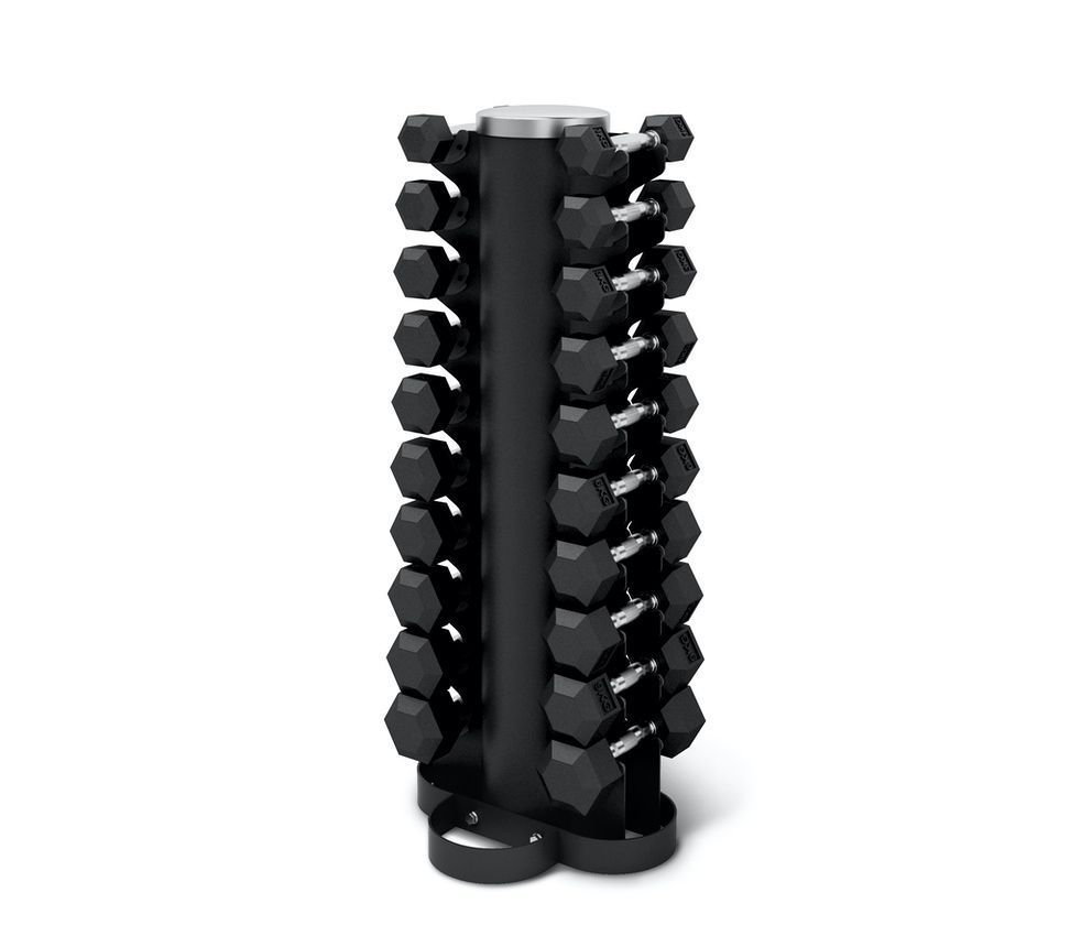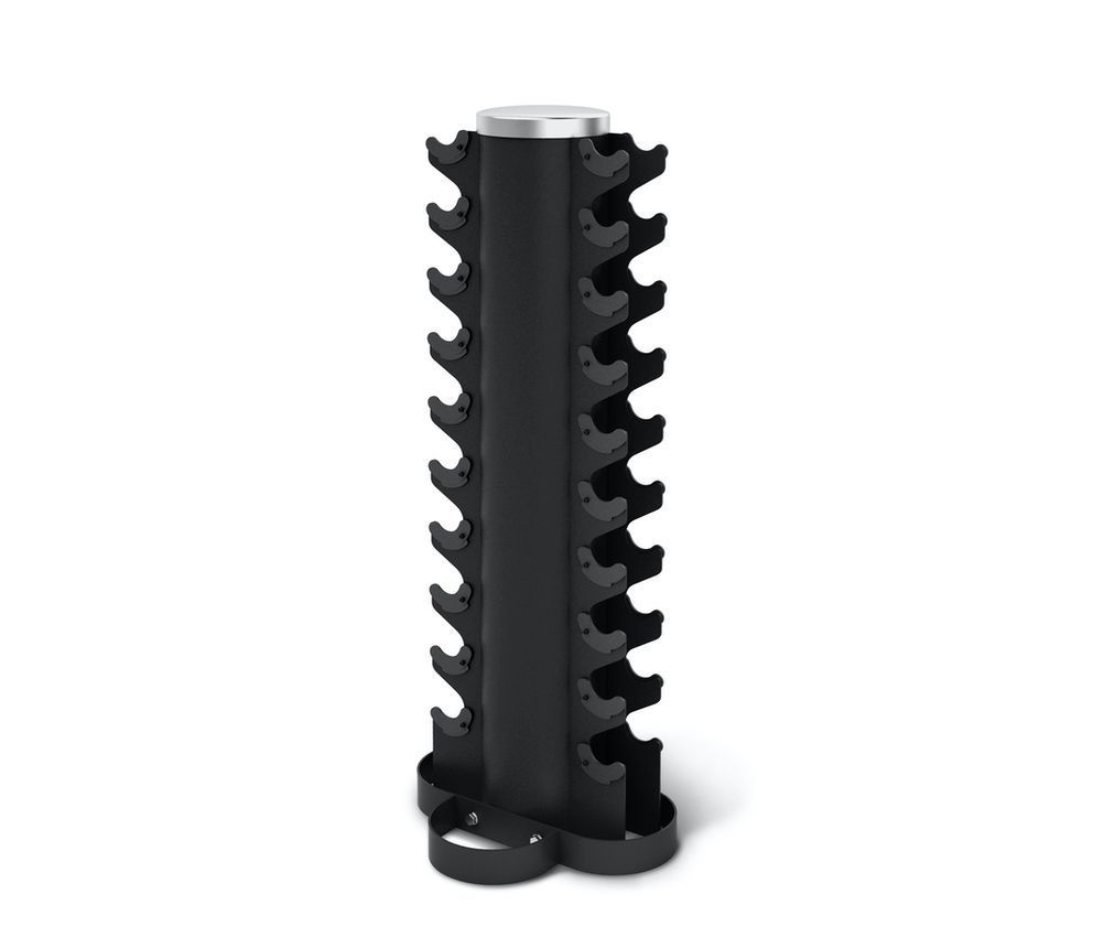 Le support vertical pour haltères 10 paires AFW modèle 10310 est un support cylindrique élégant et fonctionnel avec une finition noire et un couvercle chromé. Il est conçu pour accueillir 10 paires d’haltères et les maintenir parfaitement rangées dans une fourchette de poids de 1 à 10 kg. Fabriqué en fer avec une finition époxy noire, il offre durabilité et solidité. En outre, il est doté de bases de support spécialement conçues pour les haltères caoutchoutés, ce qui évite d’endommager à la fois les haltères et le sol. Ce support est une solution pratique et élégante pour ranger les haltères, les organiser et les rendre facilement accessibles pendant les séances d’entraînement, que ce soit à la salle de sport ou à la maison.