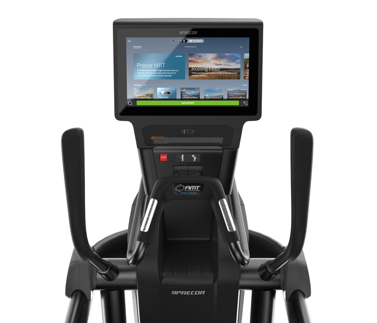 • Open Stride: El sistema Open Stride es una función exclusiva que permite a los usuarios no solo adaptar de forma dinámica la longitud de zancada de 0 cm a 91 cm, sino también ajustar la altura de zancada de 17 cm a 25 cm, proporcionando un rango infinito de trayectorias de zancada para ejercitar diversos grupos musculares. Open Stride se puede ajustar del nivel 1 al 5 con los controles de movimiento táctiles.