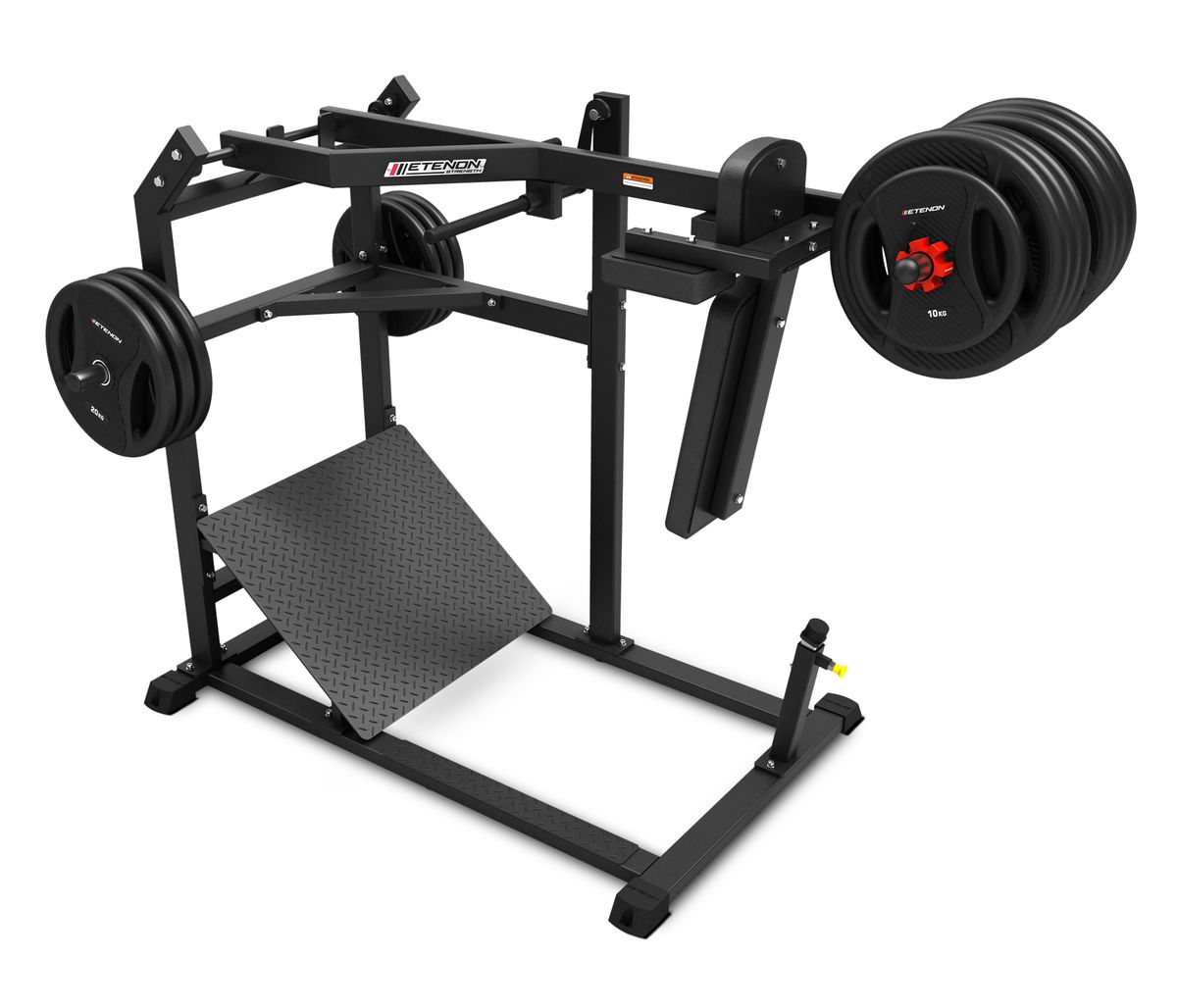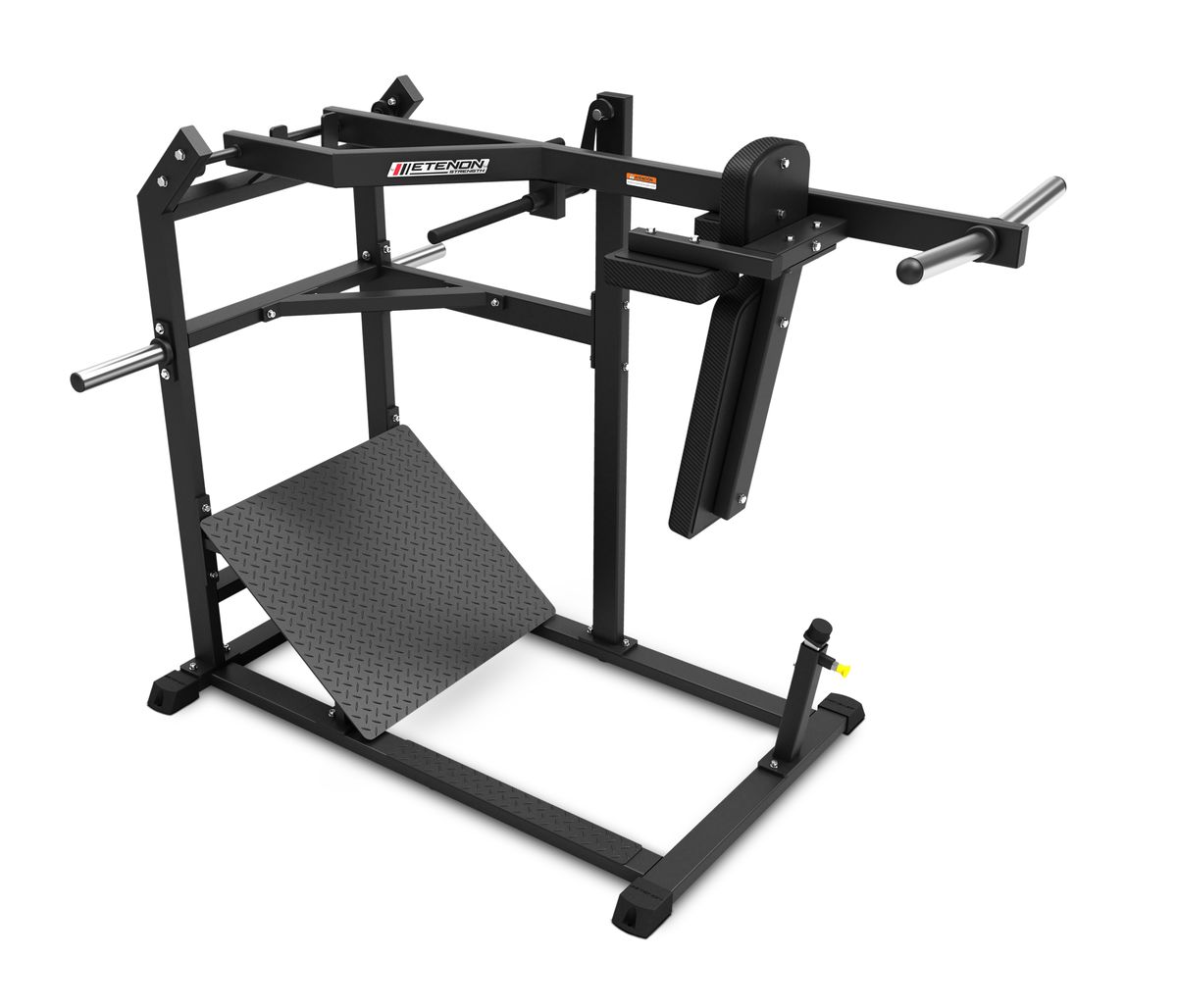 Le modèle PL Hack Squat Elite d’Etenon Fitness présente un design élégant et esthétique, soutenu par une étude de qualité exhaustive qui garantit une utilisation totalement professionnelle. Il se concentre sur l’ensemble de la zone des jambes. Cet appareil a été conçu de manière ergonomique pour permettre un mouvement naturel et fluide, en maximisant l’efficacité des exercices visant spécifiquement les quadriceps et les fémurs, et dans une moindre mesure les fessiers, les ischio-jambiers et les mollets. Son design innovant suscite la curiosité de tous ceux qui le voient. Il s’agit d’une machine qui se concentre entièrement sur la phase d’abaissement et qui crée une tension plus intense grâce à son angle, surpassant les autres solutions d’entraînement des jambes. Grâce à lui, vous pourrez effectuer une descente profonde de manière sûre et progressive.