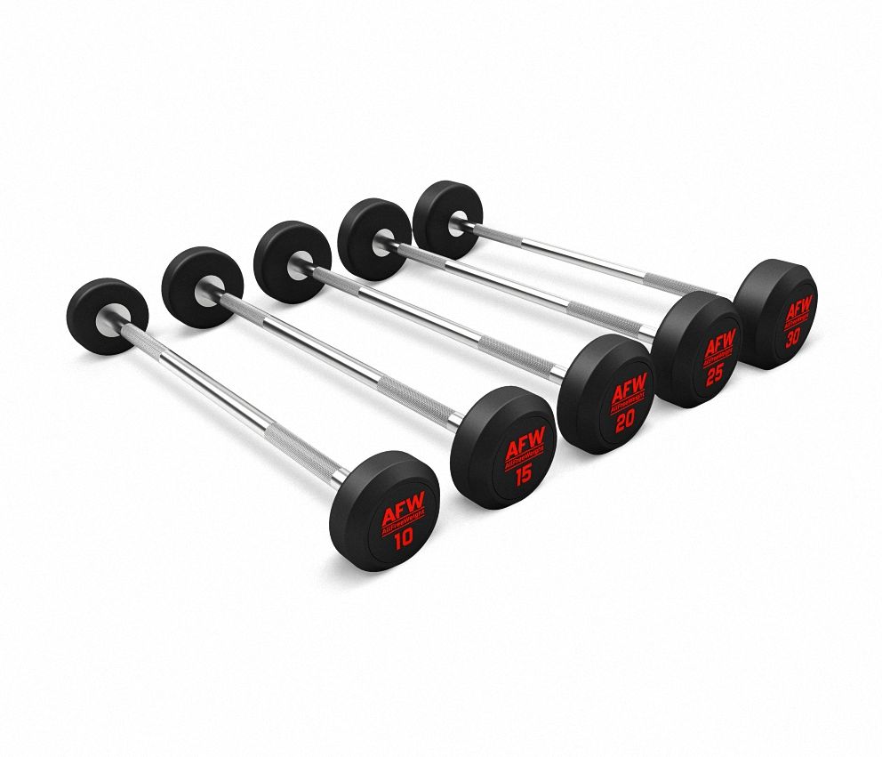 Le kit de 5 barres AFW R est un ensemble de barres en acier avec des têtes recouvertes de caoutchouc. Ce revêtement augmente la durabilité des barres, protège le sol et l’équipement d’éventuels dommages, améliore l’apparence de l’ensemble, réduit le bruit généré lors de l’entraînement et facilite le nettoyage. De plus, ces barres sont dotées d’un poids recouvert de caoutchouc avec haut-relief, offrant une prise sûre et confortable pendant les exercices. Le codage numérique rouge permet d’identifier facilement le poids de chaque barre, de 10 kg à 30 kg, facilitant ainsi la sélection de celle qui convient en fonction de vos besoins d’entraînement.