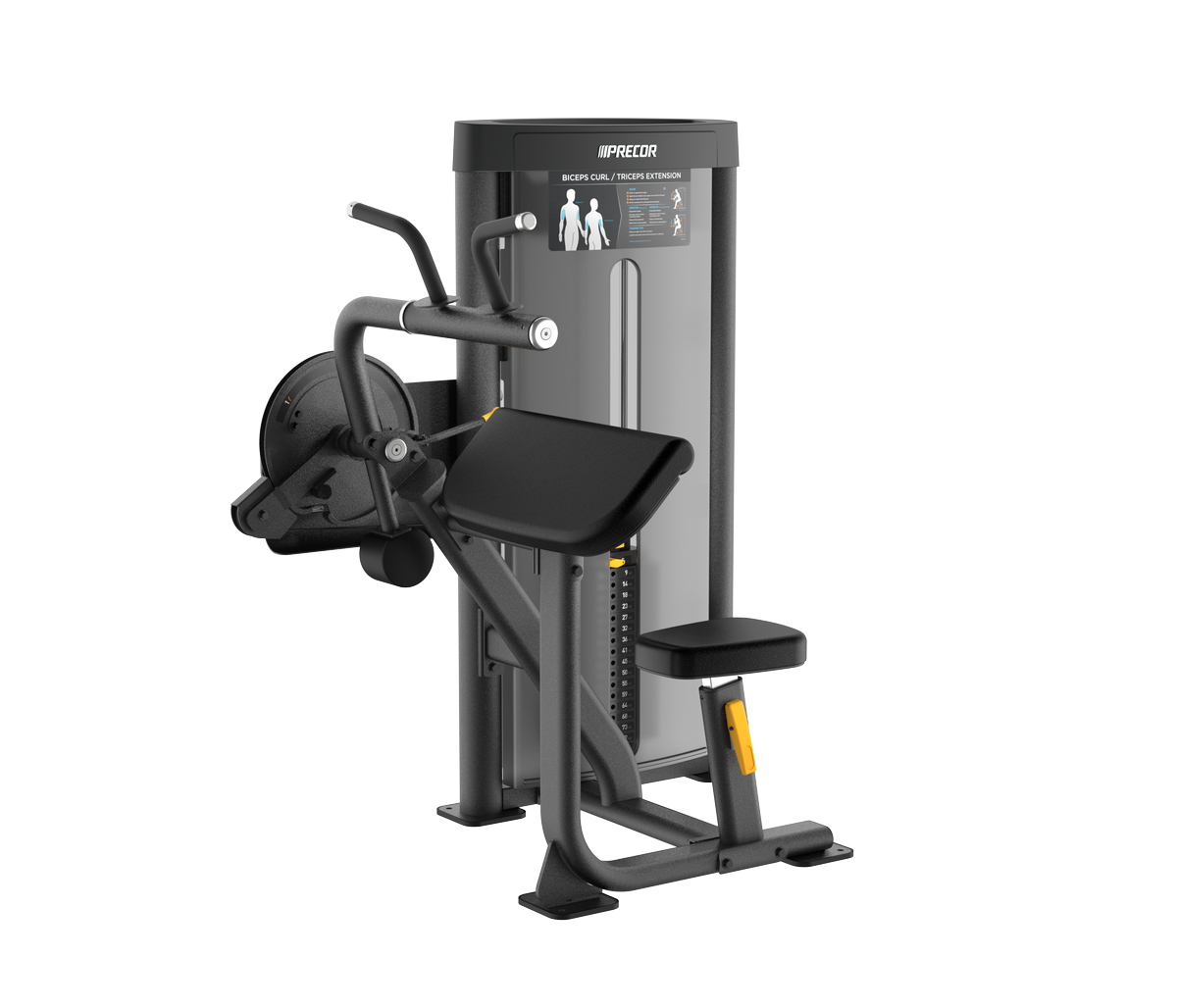 La máquina Flexión de bíceps / Extensión de tríceps de la serie Vitality™ cuenta con un agarre combinado de bíceps / tríceps para acomodar dos ejercicios en una sola máquina, lo que ahorra espacio. Incorpora un único ajuste de asiento con sistema de trinquetes para lograr un posicionamiento adecuado y una comodidad óptima durante el ejercicio. Los usuarios pueden añadir peso complementario fácilmente con tan solo empujar una palanca para aumentar la carga de trabajo.