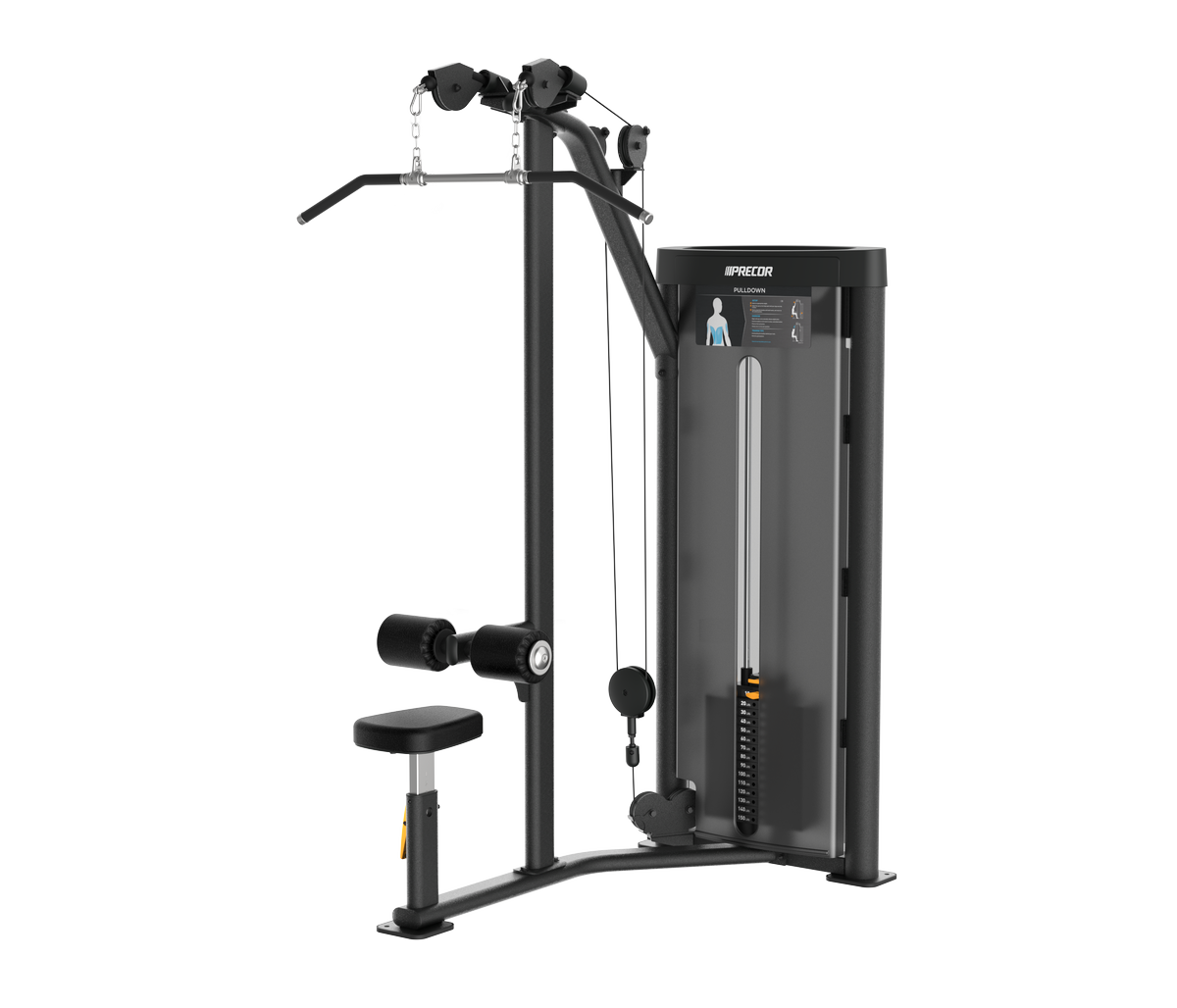 La máquina de polea alta de la serie Vitality™ ofrece una posición de inicio fácil de ajustar y posiciones dobles para las manos, que permiten variar el ejercicio. Los mangos antideslizantes proporcionan una mayor comodidad y estabilidad durante el ejercicio. Los usuarios pueden añadir peso complementario fácilmente con tan solo empujar una palanca para aumentar la carga de trabajo.